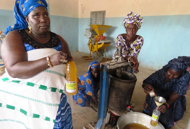 La présidente de l’association locale a un objectif clair : « Avec un atelier équipé, nous voulons produire 3'600 litres d’huile l’année prochaine et même 5'000 dans un proche futur ! ». Les membres savent que cela est possible, car elles sont en contact avec l’unité de Seiko Kankan à 26km, érigée avec le soutien de Nouvelle Planète. Dans le village de Fass Goulokoum, les femmes se sont regroupées en groupement il y a 20 ans pour transformer en huile une infime partie de l’arachide cultivée localement, surtout pour leur propre usage. La transformation traditionnelle reste peu efficace. 40 femmes produisent une quinzaine de litres d’arachide en une campagne.